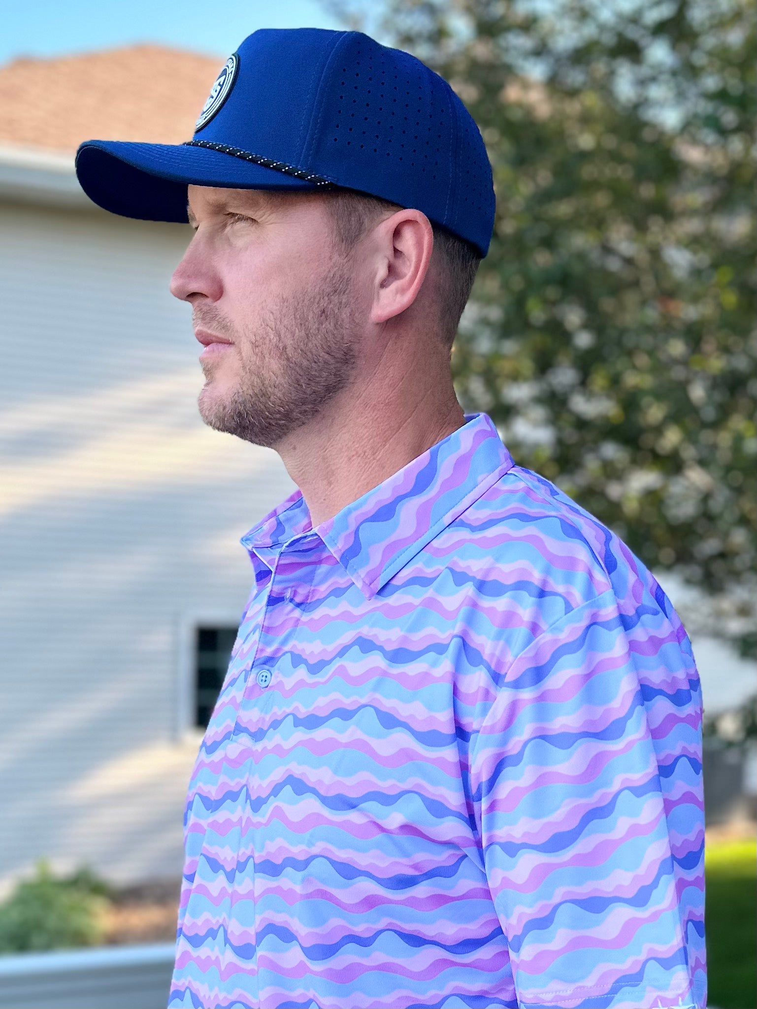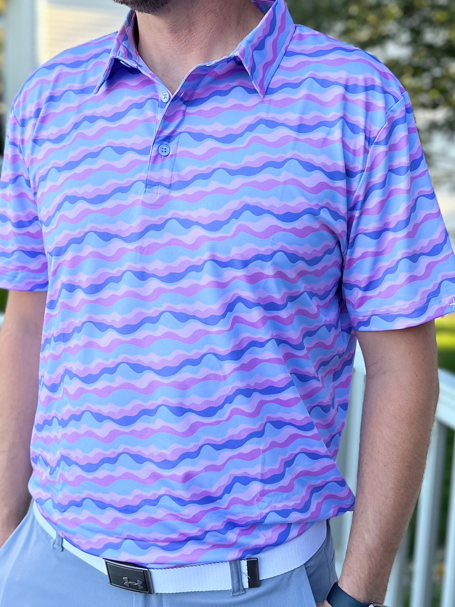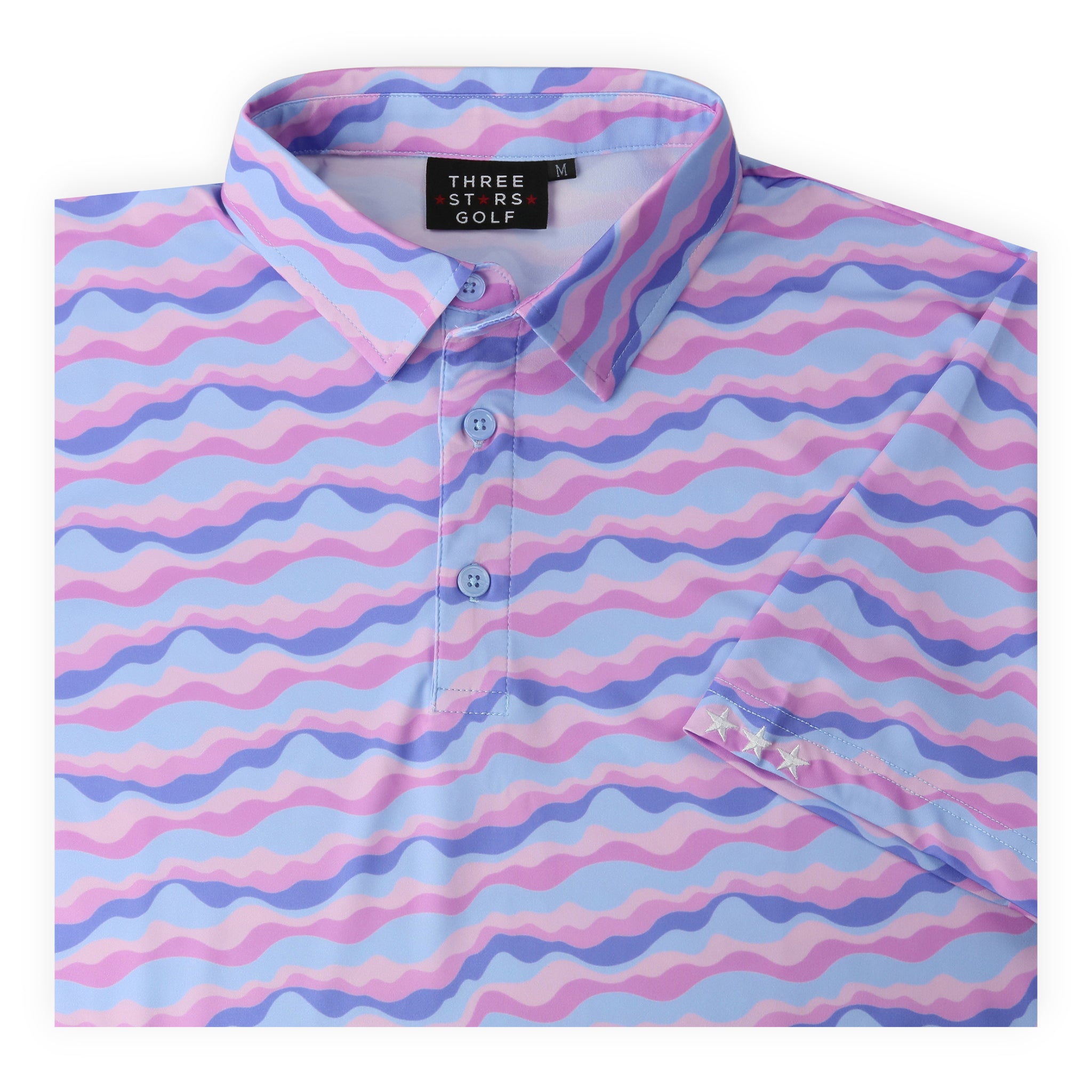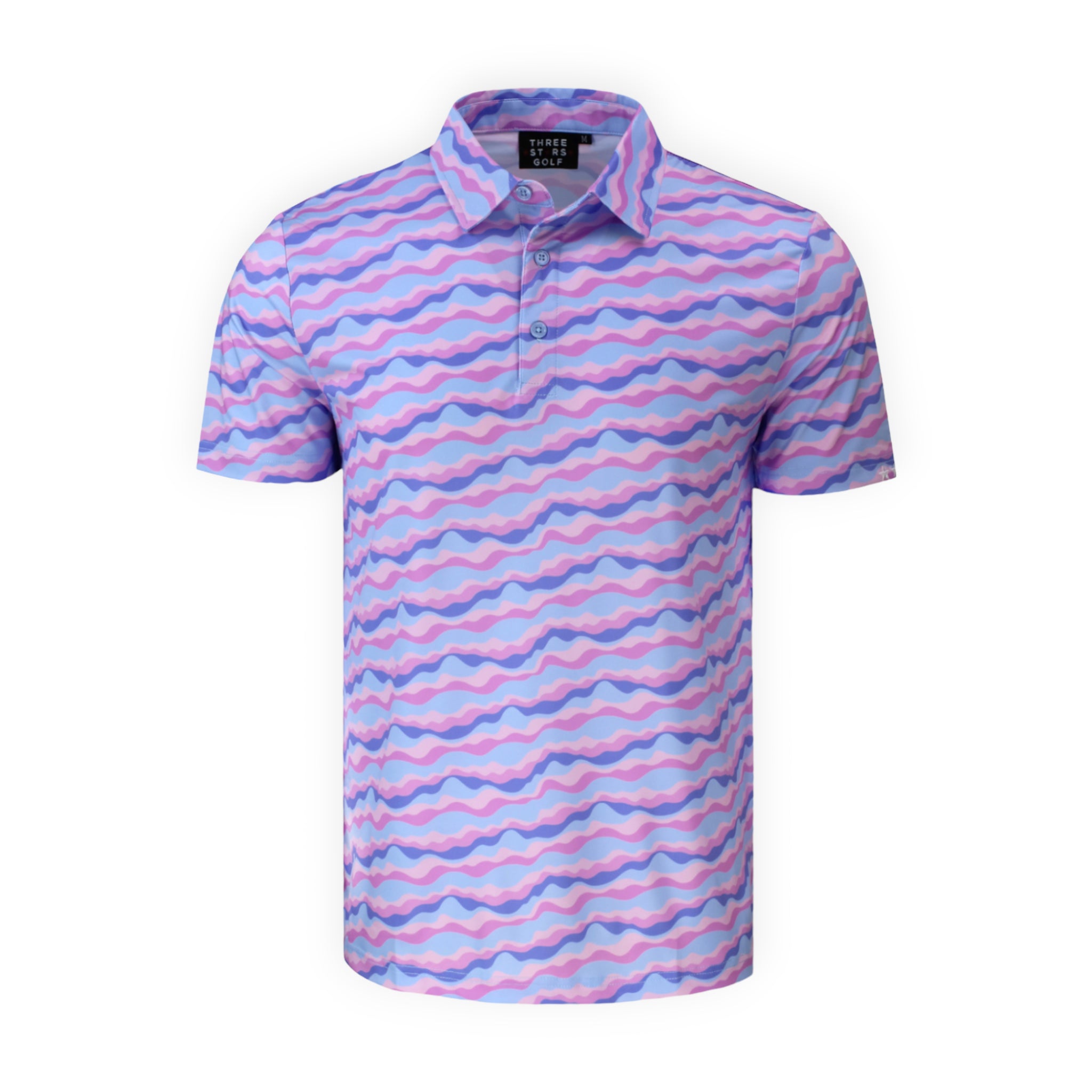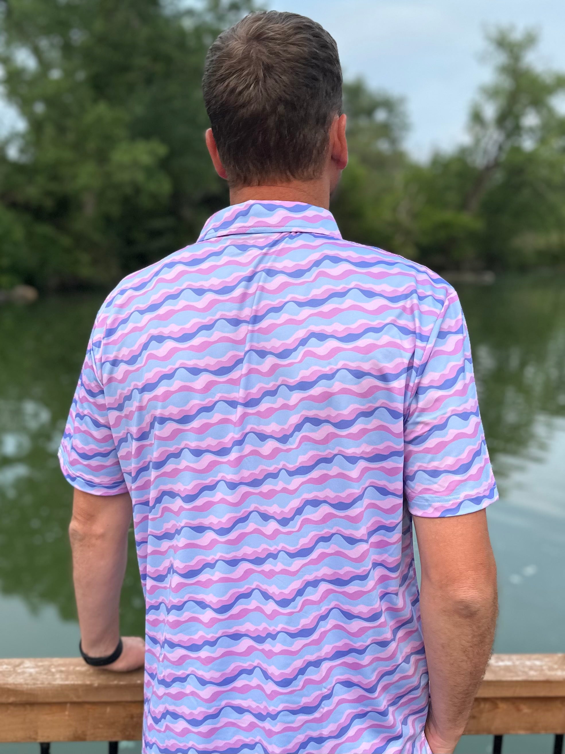 Step onto the fairway in style with Three Stars Golf's Sunset Vibes. This Smoky Mountains sunset inspired golf polo is designed to keep you cool, comfortable and looking your best, regardless of what your golf swing looks like. Crafted with a 4-way stretch and a smooth poly spandex blend, this polo ensures you'll have the full range of motion for your golf swing with no restrictions. If you're heading out to catch the twilight rates at your local muni course, be sure you are wearing Sunset Vibes.